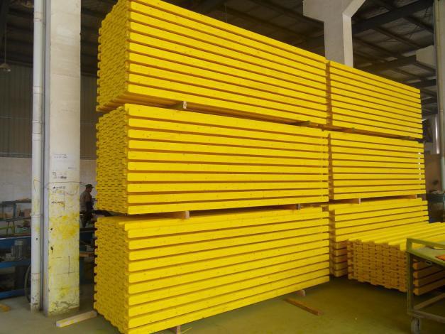 Bề mặt:Sơn chống nước màu vàng Mặt bích: Vân sam Web:Ván ép cây dương | |