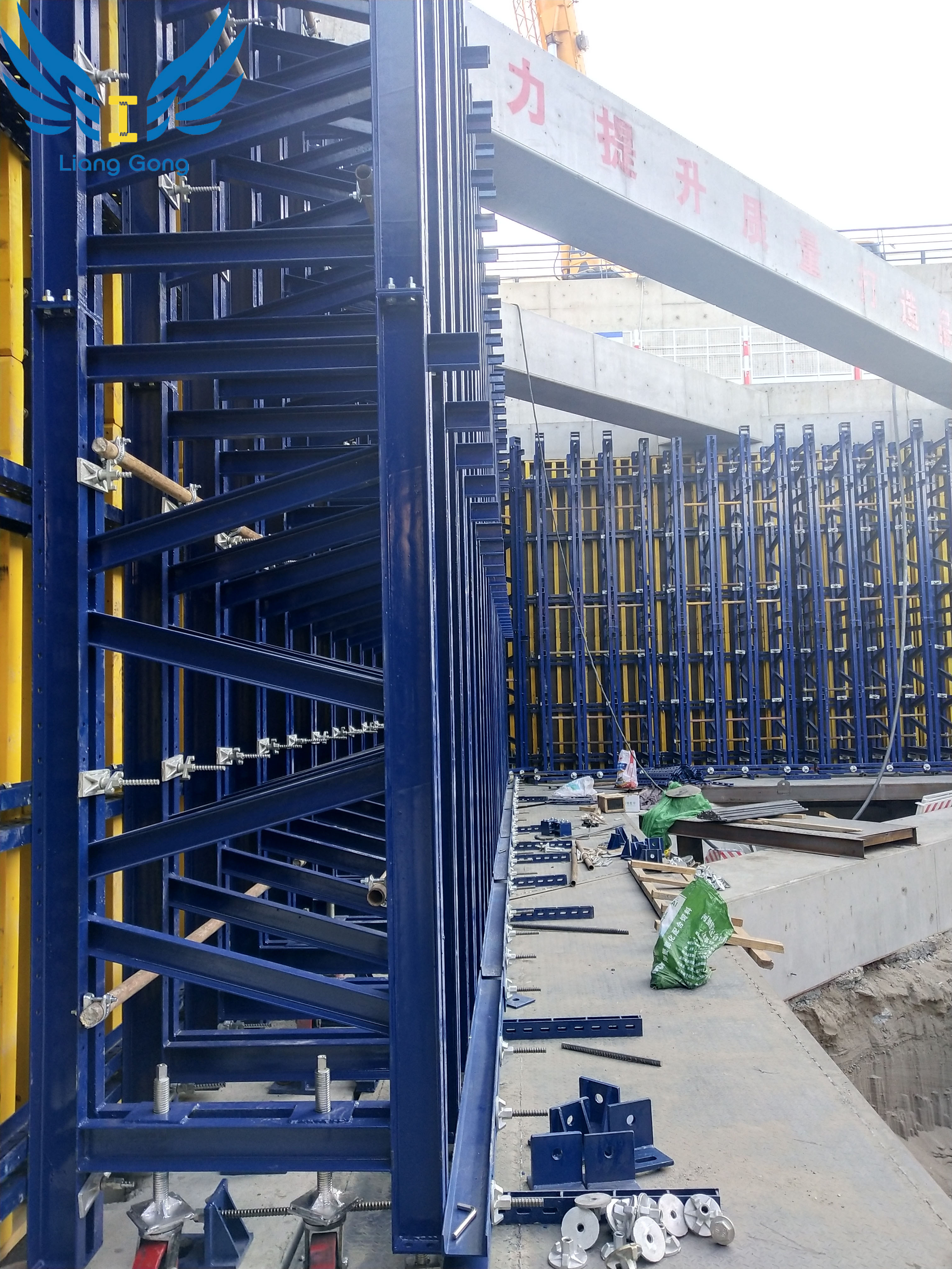 Giá đỡ một mặt bằng thép của tường chắn bê tông được thiết kế để đổ bê tông một mặt. Nó cung cấp một giải pháp hiệu quả cho ván khuôn và được sử dụng rộng rãi trong tầng hầm, nhà máy xử lý nước thải, tàu điện ngầm và bảo vệ mái dốc cầu. Hệ thống giá đỡ lắp đặt đơn giản và thiết kế không cần thanh giằng xuyên tường, đảm bảo tường không bị thấm nước sau khi đổ.