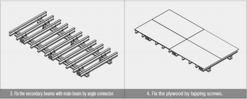 • Sử dụng vít khai thác để cố định ván ép: Đặt các tấm ván ép lên trên các dầm phụ và cố định chúng vào vị trí bằng vít khai thác.