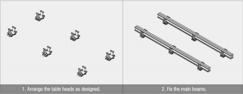 • Định vị các thanh chống bằng thép: Dán các thanh chống bằng thép vào đầu bàn và cố định chúng vào đúng vị trí bằng các ốc vít tương ứng.